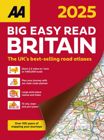 This A3 format atlas fully revised and updated for 2025, provides giant scale mapping at 2.5 miles to 1 inch and type throughout making it very easy to use. Each page has been titled with its geographical location so you can turn to the page you need more easily. Wide minor roads (more than and less than 4m wide), National Trust, English and World Heritage sites, crematorium locations and other hard-to-find places are indicated on the mapping. There are 72 city, town and port plans including a central district map of London and a full-colour admin map showing all the latest unitary authority areas. Plus, scenic routes and tourist sites with satnav friendly post codes. The top 300 AA-Inspected caravan and camping sites, and over 1800 golf courses are symbolised, as well as a four page route planner.